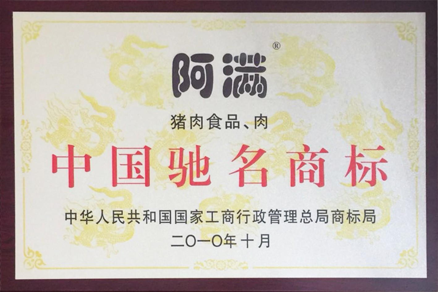 阿滿食品被國家工商總局評定為“中國馳名商標(biāo)”