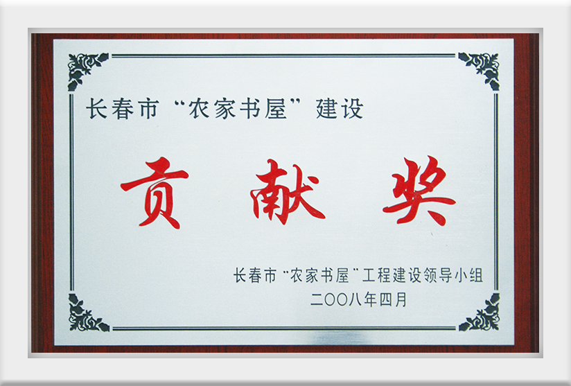 2008年4月長春市“農(nóng)家書屋”建設(shè)貢獻(xiàn)獎(jiǎng)