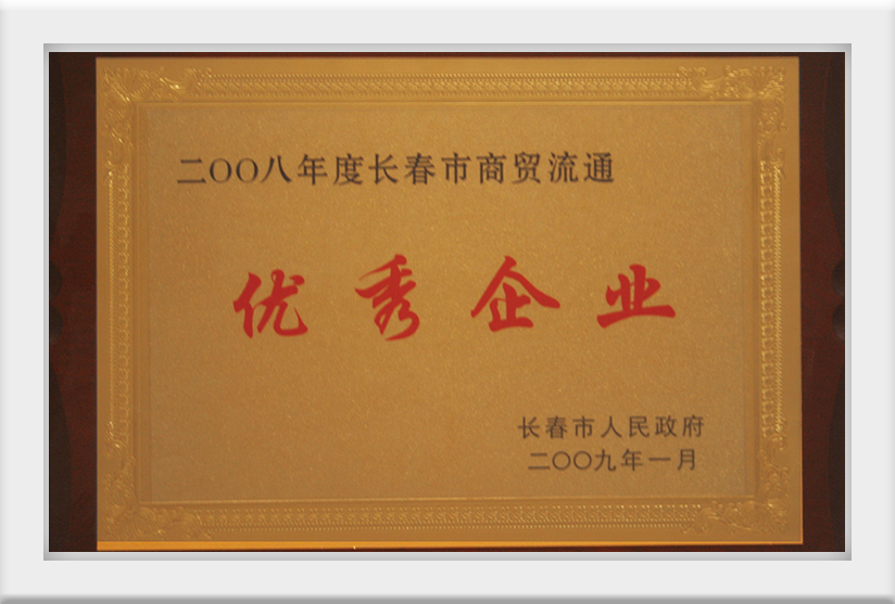 2009年1月榮獲二零零八年度長春市商貿(mào)流通優(yōu)秀企業(yè)
