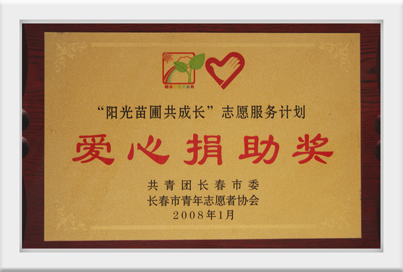 2008年1月獲得“陽光苗圃共成長”志愿服務(wù)計(jì)劃愛心捐助獎(jiǎng)