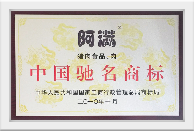 2010年10月豬肉食品、肉中國馳名商標(biāo)