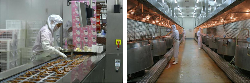 阿滿食品擁有先進(jìn)的自動(dòng)化生產(chǎn)車間,包括前處理車間、熟制車間、香腸灌制車間、油炸車間等。生產(chǎn)車間選自德國先進(jìn)生產(chǎn)線打造無菌化生產(chǎn)車間,保證產(chǎn)品質(zhì)量更穩(wěn)定;并使用行業(yè)較為領(lǐng)先的糖熏爐,糖熏爐具有優(yōu)異的發(fā)煙及循環(huán)系統(tǒng),可使?fàn)t內(nèi)的煙霧均勻分布,360度對(duì)產(chǎn)品進(jìn)行無死角熏制,從而使肉制品著色均勻,色澤美觀,保證產(chǎn)品具有較高的出品率。清洗車間引進(jìn)全自動(dòng)刷筐機(jī),機(jī)器通過熱堿水噴淋、熱水高壓噴淋以及自來水循環(huán)噴淋,三次清洗最大程度;降低油脂筐內(nèi)殘留滋生細(xì)菌。
